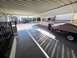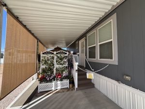 Your next home is waiting for you in ViewPoint RV & Golf Resort, a well-maintained, professionally managed manufactured home community. If you’re just starting out or have a small family, you owe it to yourself to look at this 2 bed/1 bath, 720.00 sq. ft. home. Enter into a living room with laminate flooring; dinette area has a window bench seat and built-in china hutch. Kitchen is bright and sunny with a skylight and window above the sink! Bathroom has a corner tub/shower combo and lots of storage! Spacious bedroom with a window bench seat! Hallway entry to the Arizona room addition. South facing windows make this Arizona room bright and sunny! Second bedroom is just off the Arizona room, complete with closets. Great outdoor living space in the carport! Small side yard. Deck under the carport. Two citrus trees! Talk to one of our representatives today by calling and schedule a viewing! 480-373-5750