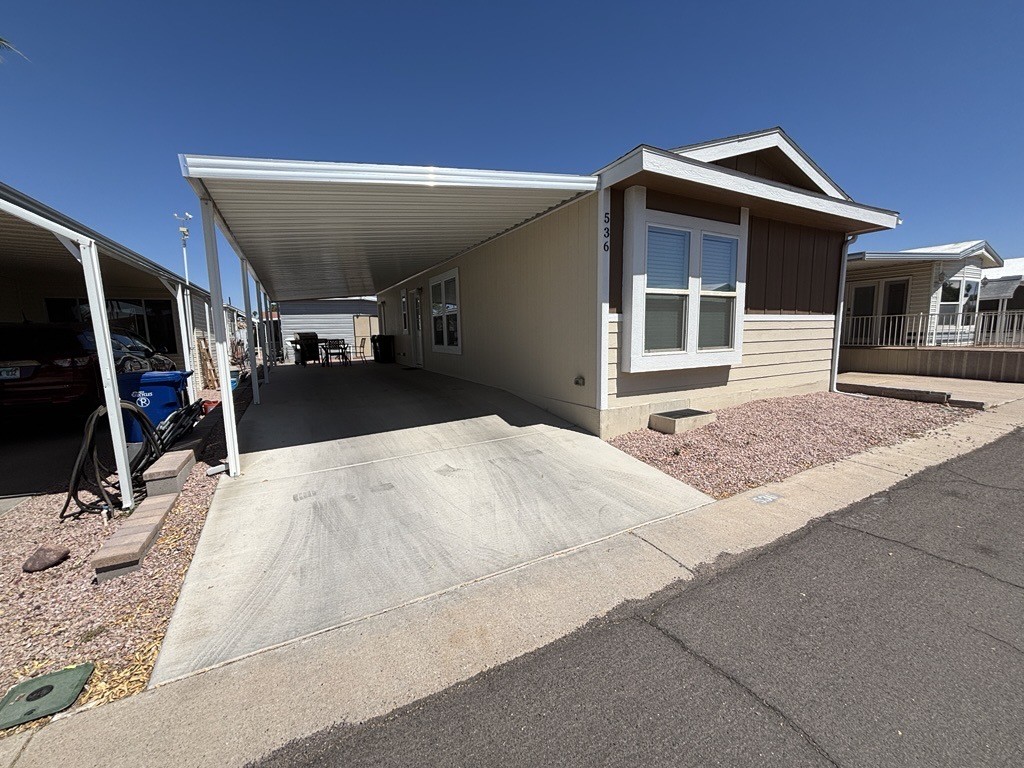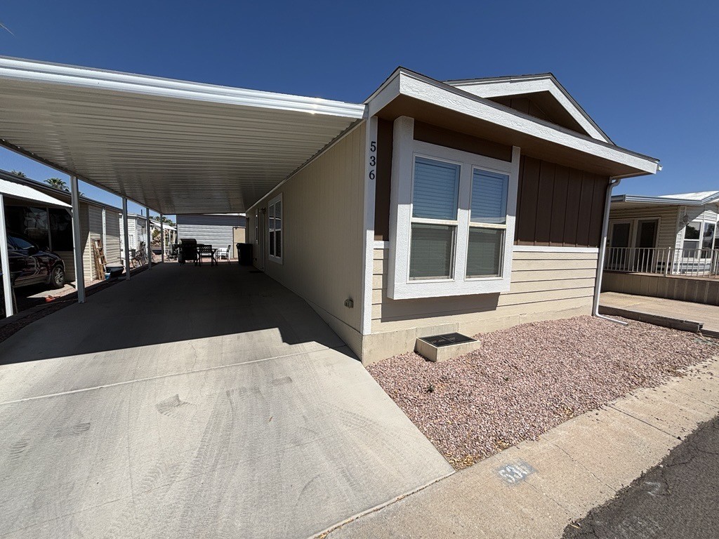 Welcome to ViewPoint RV & Golf Resort a 55+ age-qualified active and vibrant community, where you can find yourself in your dream home. We have a 2 bed, 2 bath 2023 Canyon Villa #536 home for sale featuring 748.00 sq ft of beautifully designed living space. Located in/near Mesa, this property offers the perfect blend of modern amenities and timeless charm. Step inside and discover this beautifully designed Canyon Villa featuring an open-concept floor plan, plank hardwood floors, soaring ceilings, and abundant natural light throughout. The elegant kitchen is a chef’s dream, complete with stainless steel appliances, custom misty cabinetry, and warm stone finishes—perfect for both daily living and entertaining.<br/>The spacious master suite offers a tranquil retreat, featuring dual vanities, a walk-in shower, and private access for added convenience. A versatile second bedroom provides space for guests, a home office, or hobbies. The second bathroom also includes a full-size, front-loading washer and dryer—right in your unit! Outside, take advantage of an active lifestyle with events organized by our dedicated activities team or join one of Viewpoint’s 50+ clubs. Whether you’re entertaining or relaxing, you’ll find the perfect setting. Located in the Premier Viewpoint RV & Golf Resort Enjoy exclusive access to world-class amenities including: Championship Golf Course, Pickleball and Tennis Courts, Four Swimming Pools and Seven Hot Tubs, Dance Studio and Woodshop. Whether you’re seeking relaxation or recreation, this vibrant community has it all.