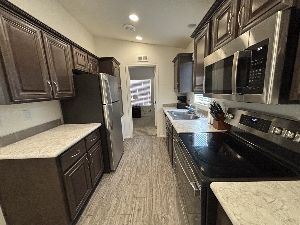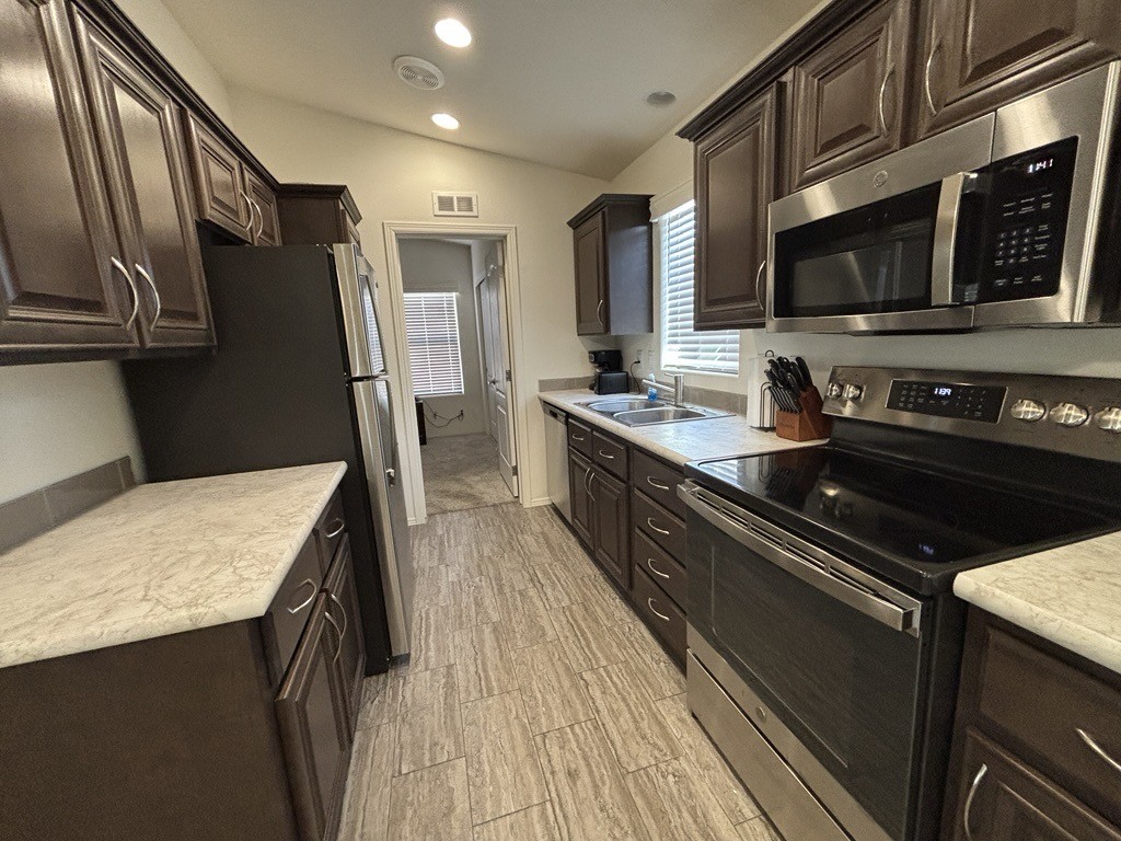 Home Features: Warm Stone finishes, Misty brown cabinetry, Stainless steel appliances and Stackable washer/dryer. Located off university entrance on row #500.