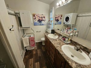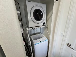 • Convenient in‑kitchen washer/dryer neatly tucked into the pantry area