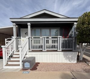Your next home is waiting for you in ViewPoint RV & Golf Resort, a well-maintained, professionally managed manufactured home community. If you’re just starting out or have a small family, you owe it to yourself to look at this 2 bed/1 bath, 720.00 sq. ft. home. Enter into a living room with laminate flooring; dinette area has a window bench seat and built-in china hutch. Kitchen is bright and sunny with a skylight and window above the sink! Bathroom has a corner tub/shower combo and lots of storage! Spacious bedroom with a window bench seat! Hallway entry to the Arizona room addition. South facing windows make this Arizona room bright and sunny! Second bedroom is just off the Arizona room, complete with closets. Great outdoor living space in the carport! Small side yard. Deck under the carport. Two citrus trees! Talk to one of our representatives today by calling and schedule a viewing! 480-373-5750